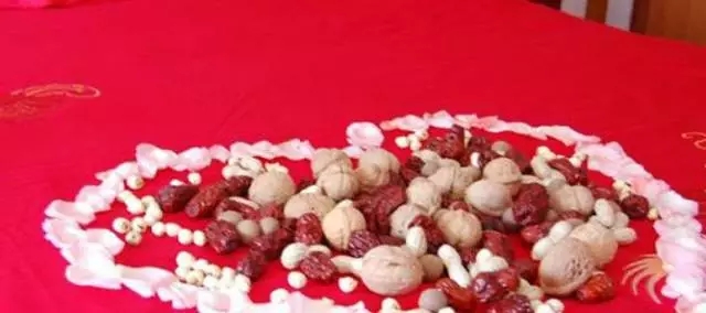 三、鋪床物品:床上需要有花生、桂圓、紅棗、蓮子、栗子等干果,象征早生貴子。鮮花,一般選擇玫瑰或百合,起到裝飾作用。