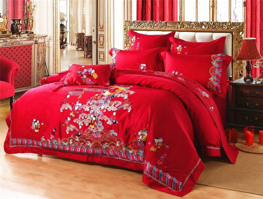 中國(guó)紅是中國(guó)人結(jié)婚必須的顏色,結(jié)婚當(dāng)天一定需要鋪一套紅色的床品,即鎮(zhèn)宅也象征新人從此紅紅火火幸福美滿。